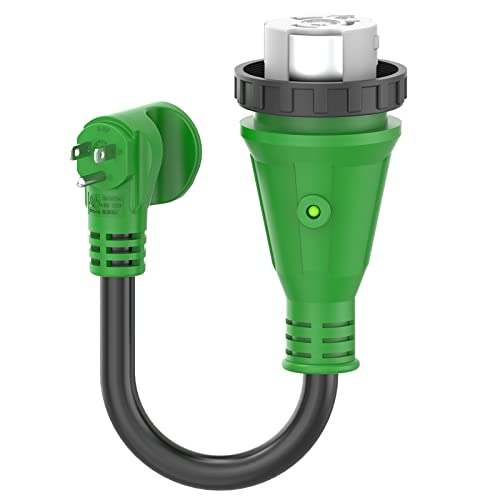 RVMATE 50 Amp to 15 Amp RV Adapter Cord, ETL Listed 50 Amp to 110 Adapter, Locking Female Power Adapter, RV Electrical Adapter with LED Indicator, Right-Angle Handle Plug Adapter