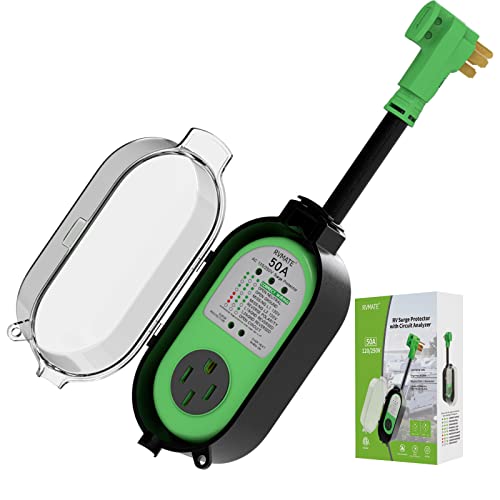 RVMATE 50 Amp RV Surge Protector, Surge Protection (4200 Joules) with Waterproof Cover, All-in-one Circuit Analyzer Power Guard with LED Indicators for RV/Camper Accessories, ETL Listed